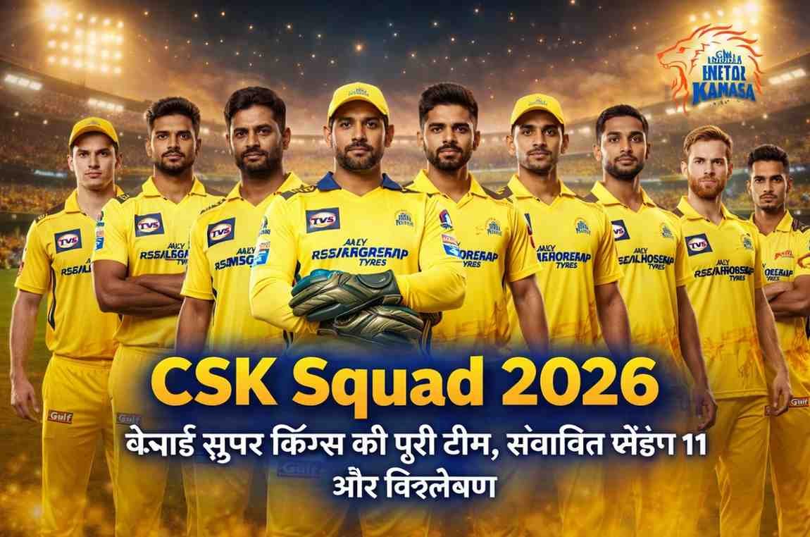 यह लेख CSK Squad 2026 से संबंधित नवीनतम समाचार, टीम संयोजन, ऑक्शन अपडेट और विश्लेषण पर आधारित है। टीम की अंतिम घोषणा IPL 2026 के आधिकारिक ऐलान और मैच परिस्थितियों के अनुसार बदल भी सकती है। यह कंटेंट केवल सूचना आधारित है और किसी भी वास्तविक निर्णय से पहले आधिकारिक स्रोतों की पुष्टि आवश्यक है|